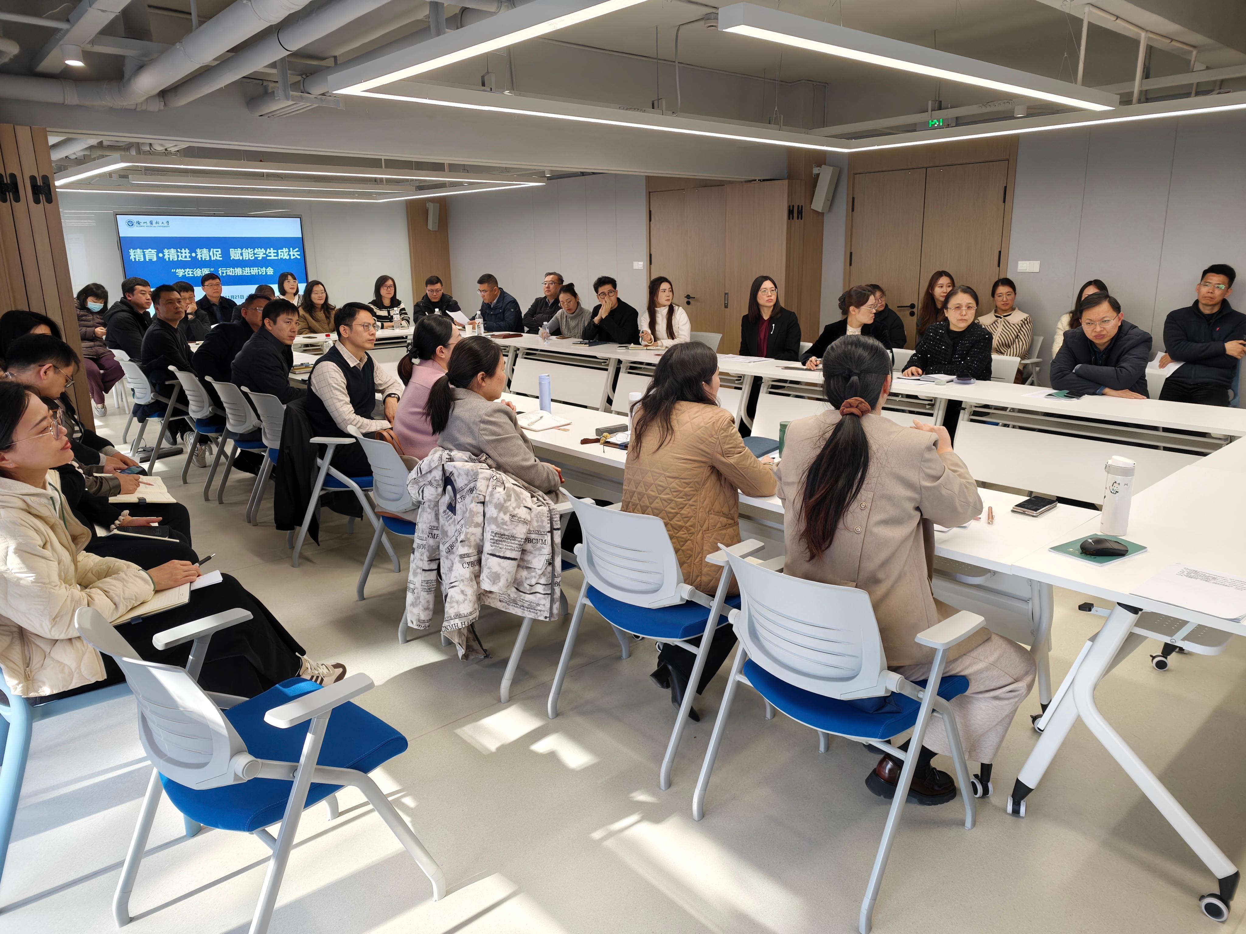 交流研讨环节,与会代表围绕学风建设、学业帮扶、就业拓展等议题进行了深入探讨。王媛认真听取汇报,并与参会代表充分交流。