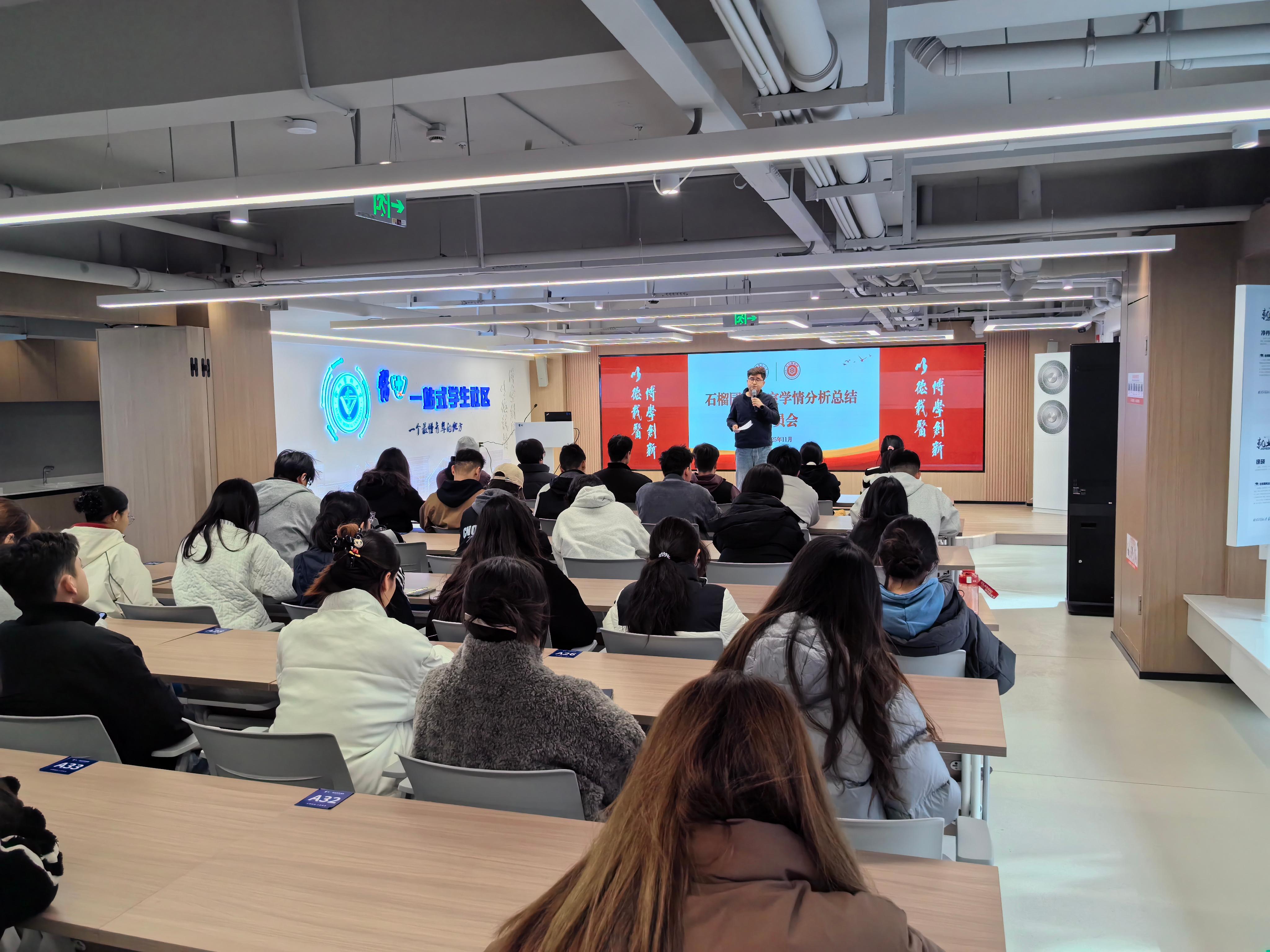 为全面提升学风建设实效,营造勤学笃行的育人环境,11月25日,石榴园工作室学情分析总结暨学风建设推进会在“医+”一站式学生社区举行,各民族学生代表70余人参加会议。少数民族学生工作办公室辅导员卡赛尔主持会议,围绕学情分析、主题教育、榜样示范、学涯规划和互动交流五个板块展开深入研讨。